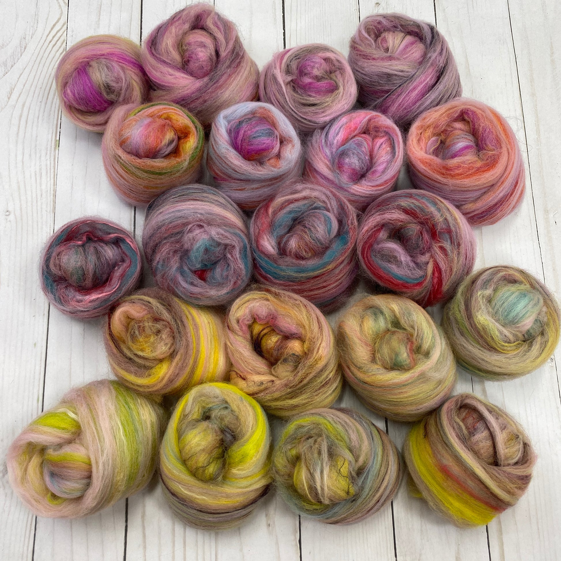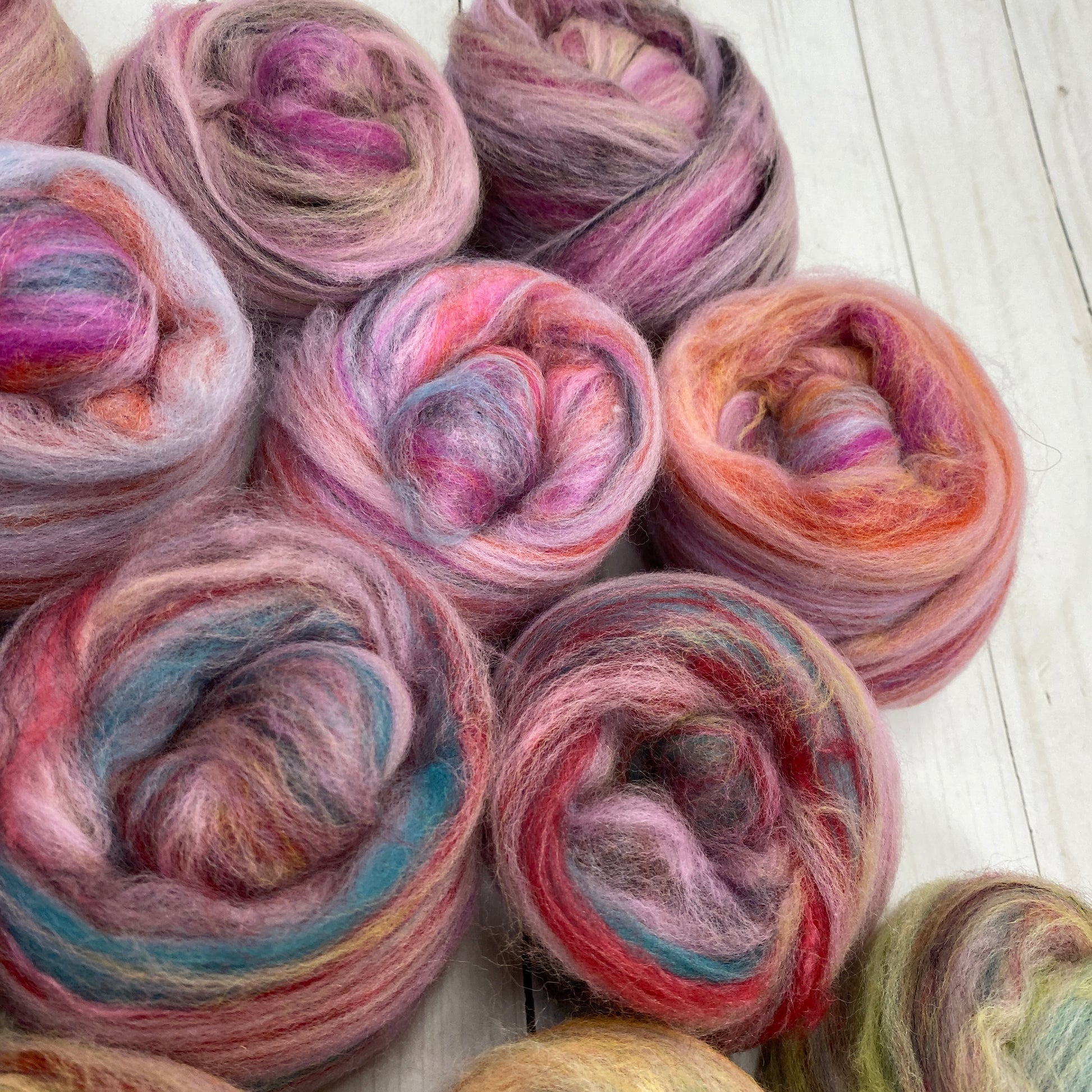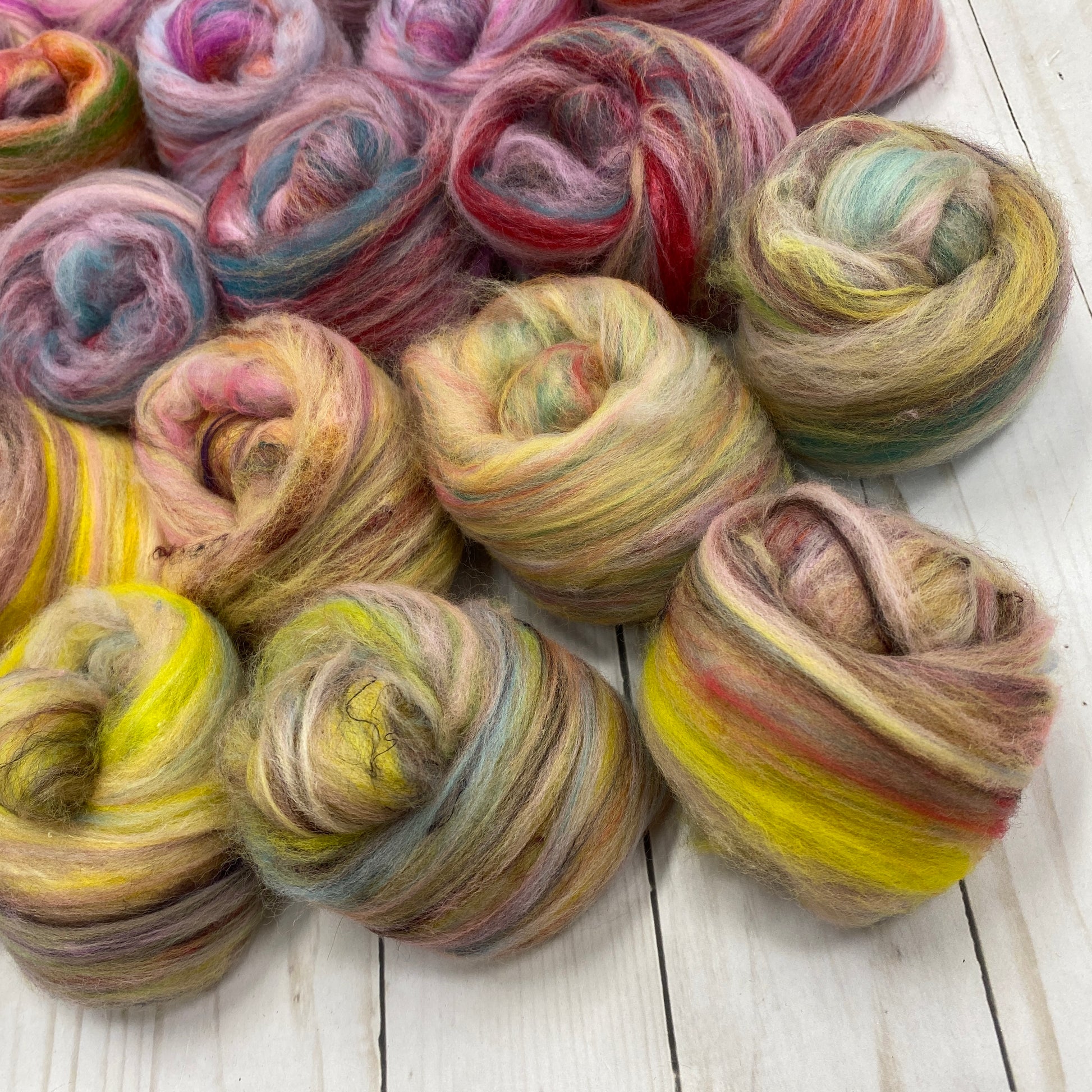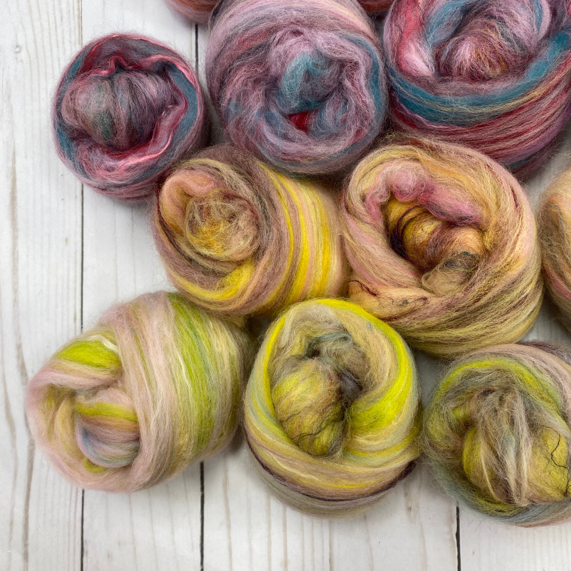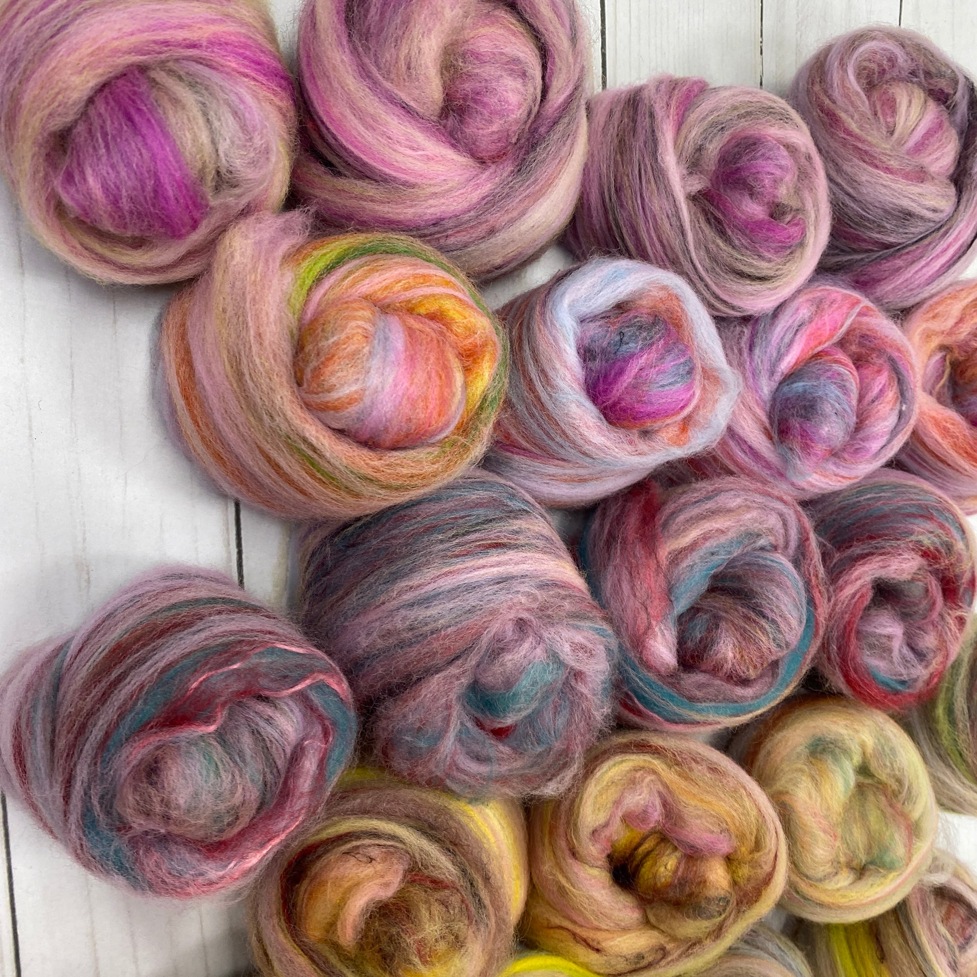 5.9oz SW Merino, and several other small bits of fiber that I did not write down! Some dyed by me, some dyed by other artists.
