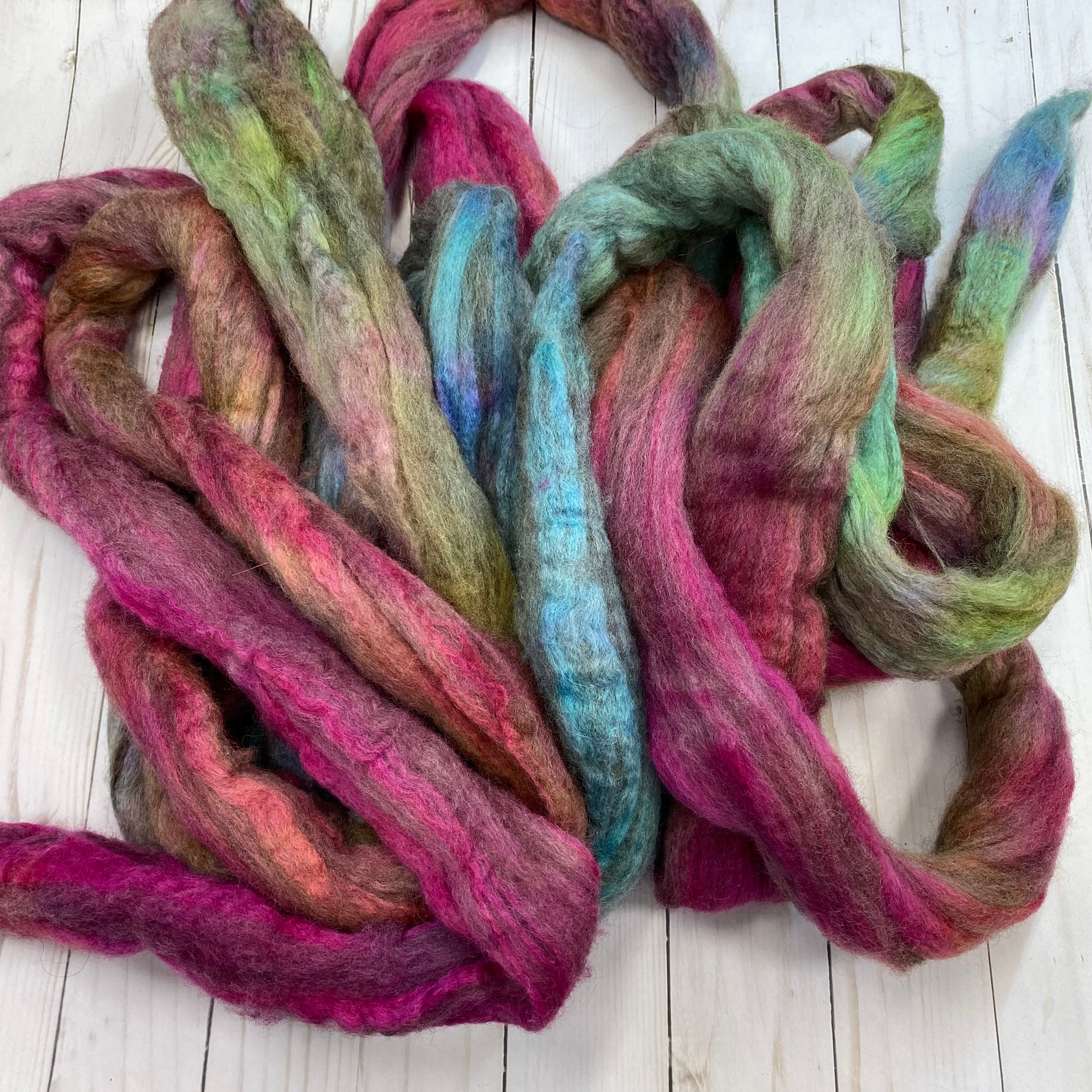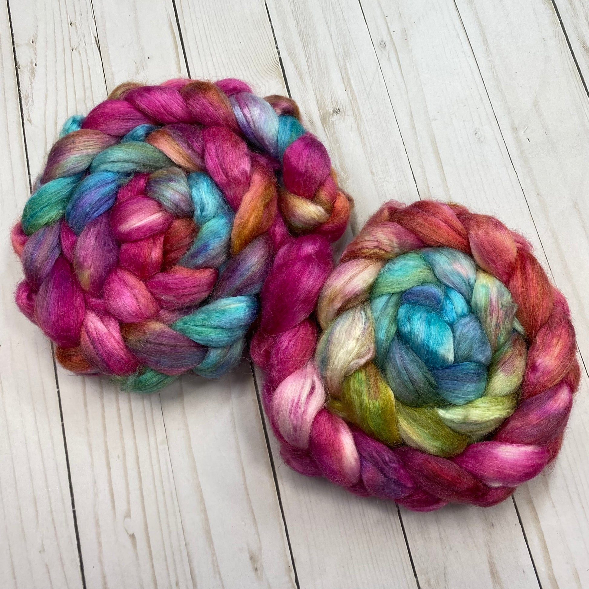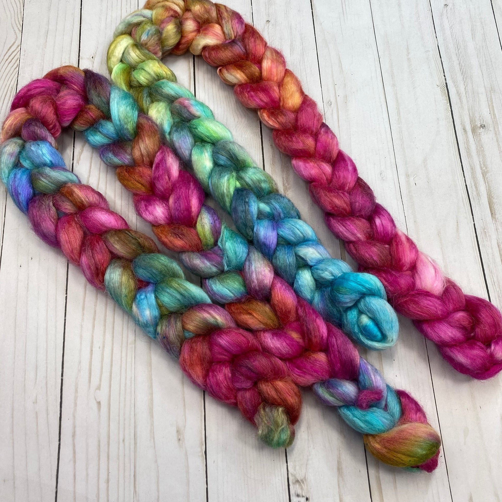 All braids dyed in the same batch, see varieties for different fiber blends.