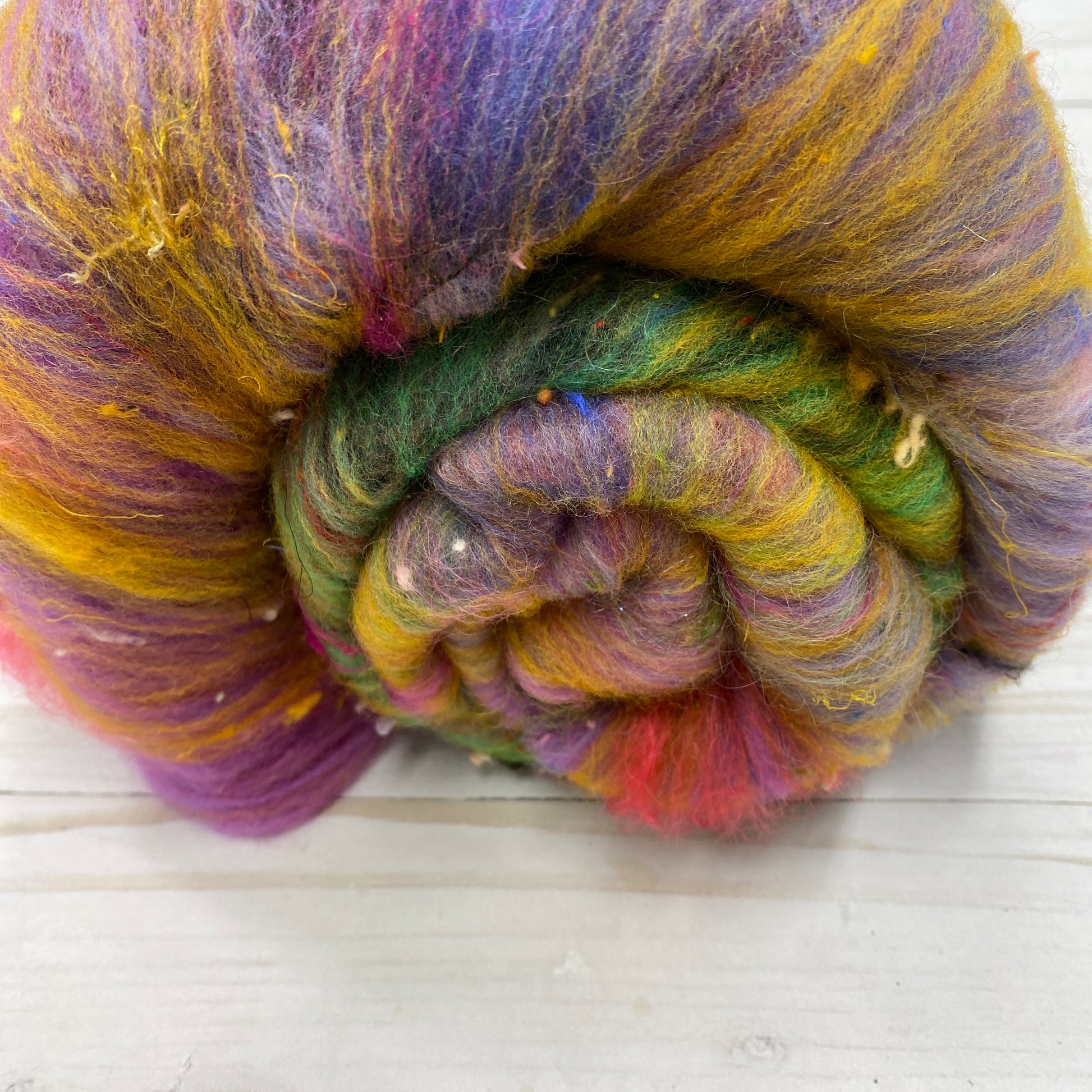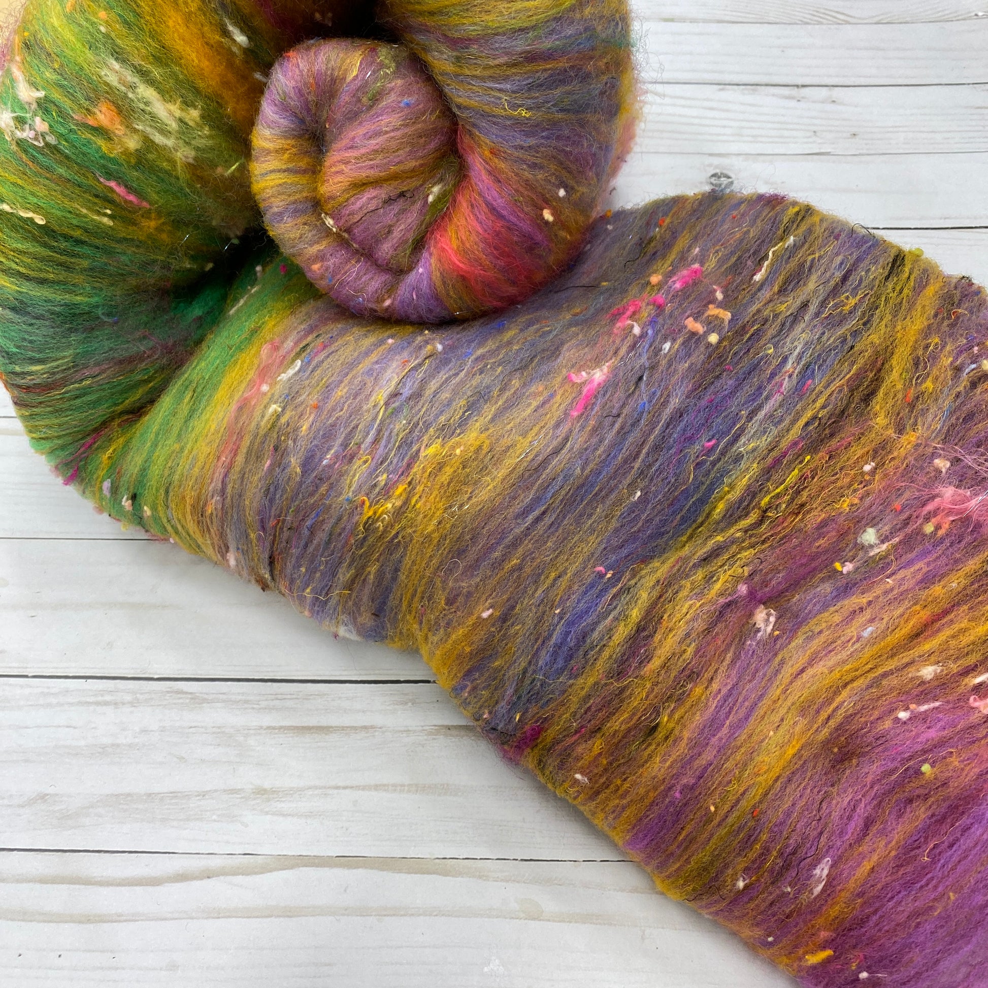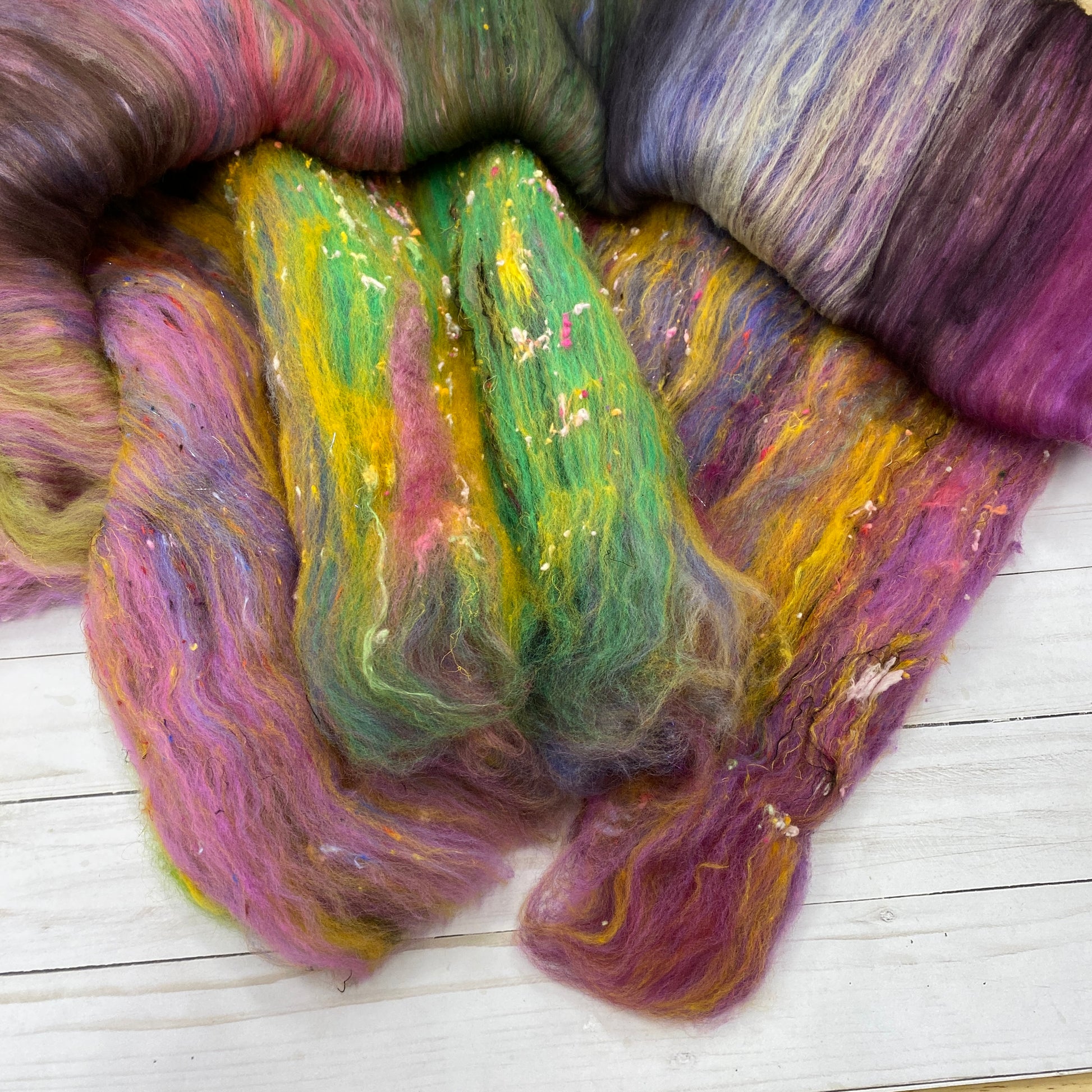 4.6oz/131g. Superwash Merino-Locks-Cotton Nepps-Sari Silk-Angora-Falkland-Rambouillet-Ramie-Llama-Bamboo